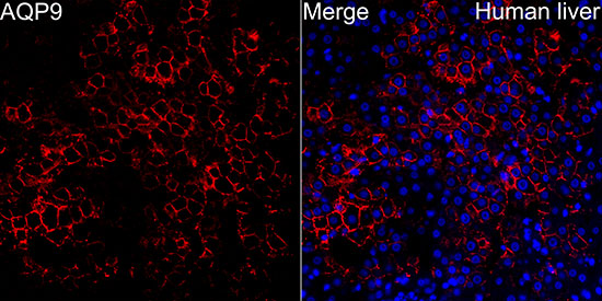 We offer Aquaporin-9 Antibodies for use in common research applications: Immunohistochemistry, Western Blot. Each Aquaporin-9 Antibody is fully covered by our Guarantee+, to give you complete peace of mind and the support when you need it. Our Aquaporin-9 Antibodies can be used in a variety of model species: Human. Use the list below to choose the Aquaporin-9 Antibody which is most appropriate for your research; you can click on each one to view full technical details, images, references, reviews and related products. Choose from our Aquaporin-9 polyclonal antibodies.