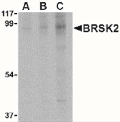We offer BRSK2 Antibodies for use in common research applications: ELISA, Immunofluorescence, Immunohistochemistry, Immunohistochemistry-Paraffin, Western Blot. Each BRSK2 Antibody is fully covered by our Guarantee+, to give you complete peace of mind and the support when you need it. Our BRSK2 Antibodies can be used in a variety of model species: Human, Mouse. Use the list below to choose the BRSK2 Antibody which is most appropriate for your research; you can click on each one to view full technical details, images, references, reviews and related products. Choose from our BRSK2 polyclonal antibodies.