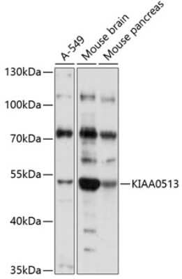 We offer KIAA0513 Antibodies for use in common research applications: Immunocytochemistry/Immunofluorescence, Immunohistochemistry, Immunohistochemistry-Paraffin, Western Blot. Each KIAA0513 Antibody is fully covered by our Guarantee+, to give you complete peace of mind and the support when you need it. Our KIAA0513 Antibodies can be used in a variety of model species: Human. Use the list below to choose the KIAA0513 Antibody which is most appropriate for your research; you can click on each one to view full technical details, images, references, reviews and related products. Choose from our KIAA0513 polyclonal antibodies.