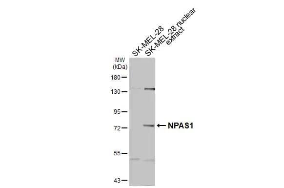 We offer NPAS1 Antibodies for use in common research applications: Immunocytochemistry/Immunofluorescence, Immunohistochemistry-Paraffin, Western Blot. Each NPAS1 Antibody is fully covered by our Guarantee+, to give you complete peace of mind and the support when you need it. Our NPAS1 Antibodies can be used in a variety of model species: Human, Mouse, Rat. Use the list below to choose the NPAS1 Antibody which is most appropriate for your research; you can click on each one to view full technical details, images, references, reviews and related products. Choose from our NPAS1 polyclonal antibodies.