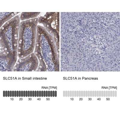 We offer OSTalpha Antibodies for use in common research applications: Immunohistochemistry, Immunohistochemistry-Paraffin, Western Blot. Each OSTalpha Antibody is fully covered by our Guarantee+, to give you complete peace of mind and the support when you need it. Our OSTalpha Antibodies can be used in a variety of model species: Bovine, Human, Rat. Use the list below to choose the OSTalpha Antibody which is most appropriate for your research; you can click on each one to view full technical details, images, references, reviews and related products. Choose from our OSTalpha polyclonal antibodies.