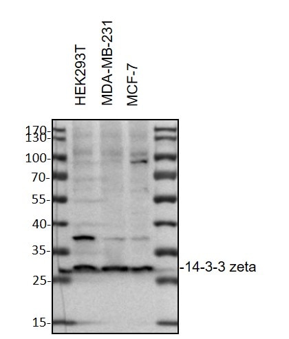 | Immunogen | E. coli-derived recombinant human 14-3-3 zeta Asp2-Asn245 Accession # P63104 |