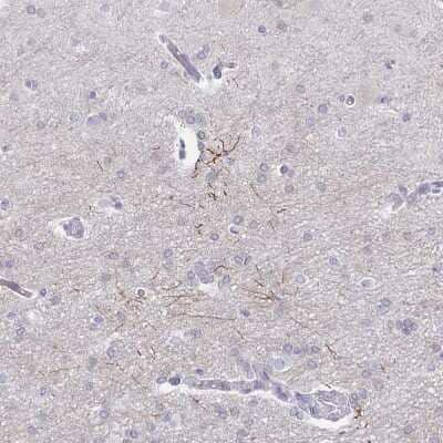 Immunohistochemistry-Paraffin: 5-HT2A Antibody [NBP1-90318] - Staining of human cerebral cortex shows weak positivity in plasma membrane in glial cells.