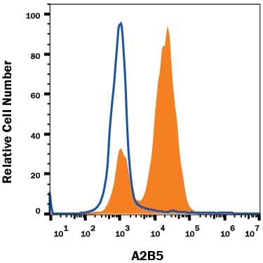 | Specificity | Recognizes the A2B5 cell surface ganglioside epitope found on type II astrocytes, cells involved in gliogenesis, and cells committed to the oligodendrocyte lineage (1‑4). |