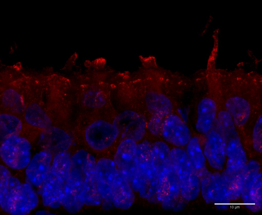Immunohistochemistry-Paraffin: Actin Gamma 1 Antibody (NH3) [NB100-64792] - Human inner ear tissue section stained with Actin Gamma 1 antibody at 1:100 overnight at 4C and detected with Alexa Fluor 488 Donkey anti-mouse ...read more