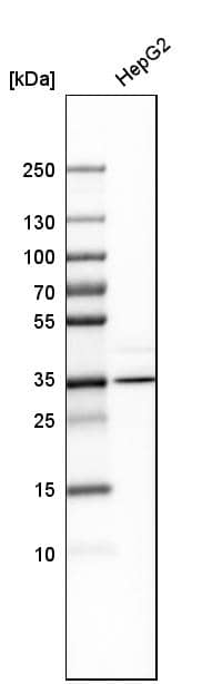 44 kDa. Disclaimer note: The observed molecular weight of the protein may vary from the listed predicted molecular weight due to post translational modifications, post translation cleavages, relative charges, and other experimental factors. |