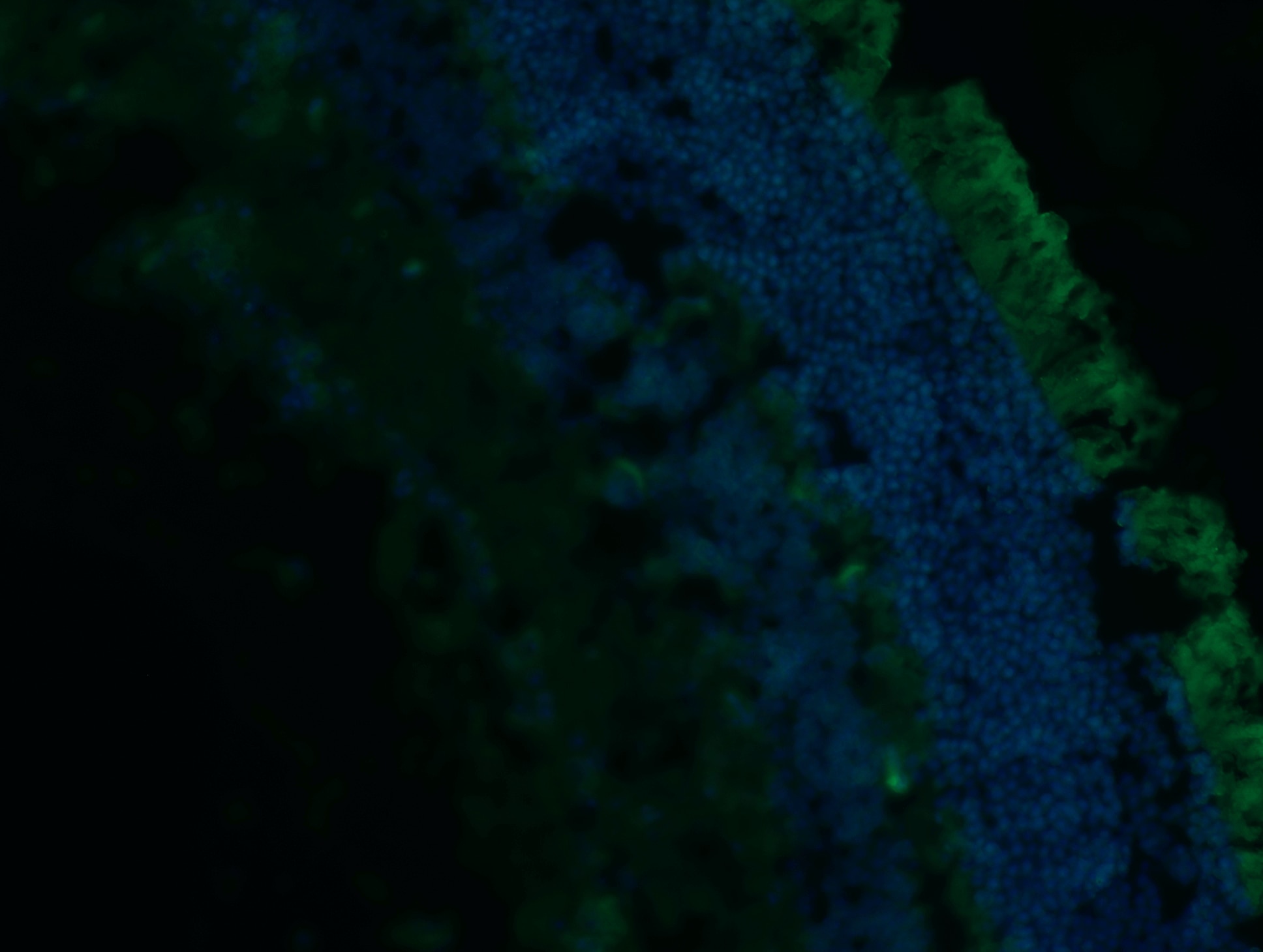 Immunohistochemistry-Paraffin: ATOH7 Antibody [NBP1-88639] - Staining of human eye shows weak to moderate nuclear positivity in the outer nuclear layer of retina.