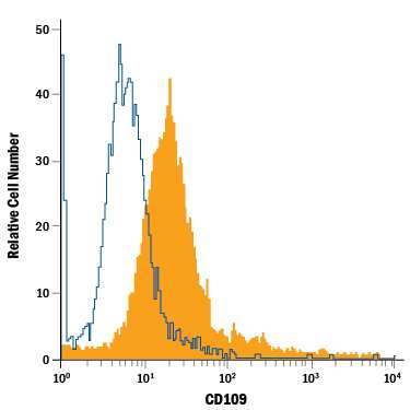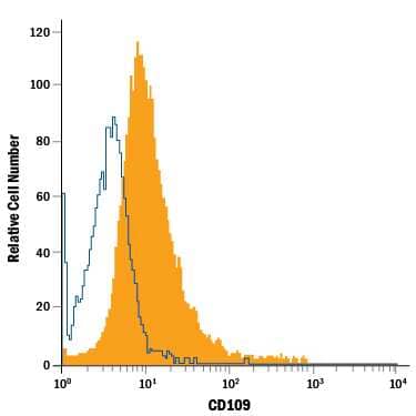 CD109 is a GPI-anchored member of the alpha -2-Macroglobulin (A2M) and complement family of proteins (1). Mature human CD109 contains a bait region with recognition sequences for multiple proteases, an internal thioester bond, and a domain similar to the receptor binding domain of A2M (2). Cleavage of A2M family proteins within the bait region activates the thioester bond to promote covalent bonding to nucleophilic groups in adjacent molecules (3, 4). Within the region included in this recombinant protein, human CD109 shares 71-73% amino acid (aa) sequence identity with mouse and rat CD109. It shares 27-33% aa sequence identity with A2M and complement factors C3, C4, and C5. Alternate splicing of human CD109 generates two isoforms with short deletions and one that is truncated within the bait region. CD109 is expressed on activated T cells and platelets, hematopoietic stem cells, megakaryocyte precursors, vascular endothelial cells, basal and myoepithelial cells of secretory glands, and squamous cell carcinomas (2, 5-9). It is produced as a 170-180 kDa glycoprotein that is autocatalytically processed to 150 kDa and 120 kDa forms (2, 6, 10). CD109 on keratinocytes binds TGF-beta and associates with TGF-beta RI and TGF-beta RII, resulting in inhibition of TGF-beta signaling (11). Polymorphisms of CD109 include the platelet-specific Gov antigen and the blood group ABH antigens (12, 13). Alloantibodies directed against these antigens result in unsuccessful platelet transfusions, neonatal alloimmune thrombocytopenia, and posttransfusion purpura (14).