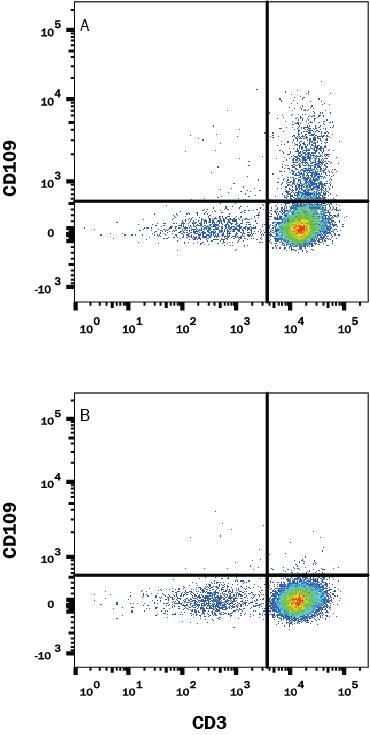 Biological Strategies: Human peripheral blood mononuclear cells (PBMCs) treated with 2 ug/mL PHA for 5 days were stained with Mouse Anti-Human CD3e APC-conjugated Monoclonal Antibody (Catalog # FAB100A) and (A) ...read more