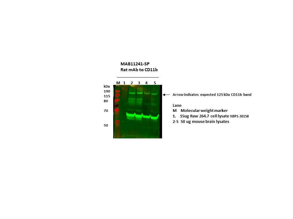 | Specificity | Detects recombinant mouse CD11b/Integrin alpha M in Western blot. |