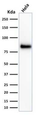 Application Notes | Immunohistochemistry (Formalin-fixed): 1-2ug/ml for 30 minutes at RT. Staining of formalin-fixed tissues requires heating tissue sections in 10mM Tris with 1mM EDTA, pH 9.0, for 45 min at 95C followed by cooling at RT for 20 minutes. Optimal dilution for a specific application should be determined. |