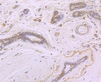 CD46 is one of the membrane complement regulatory proteins. CD46 possesses C3b-binding and factor I cofactor activities which play important roles in regulation of complement activation pathway. CD46 is widely distributed on blood cells, endothelial cells, epithelial cells and tumor cell lines. CD46 exists as many isoforms in a variety of tissues. The antigen has a broad distribution and is present on leukocytes, platelets, endothelial cells, epithelial cells and fibroblasts. It is strongly expressed on salivary gland ducts and kidney ducts, moderately on lymphocytes and endothelium, and weakly on interstitial tissues and muscle cells, but not on erythrocytes. It is expressed on thymocytes, B cells, monocytes, granulocytes, NK cells, platelets, epithelial and endothelial cells.