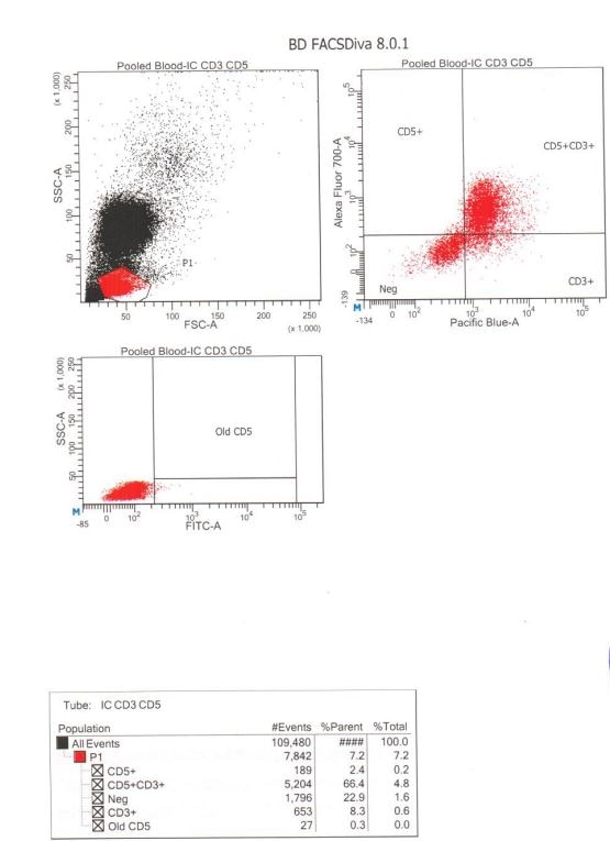| Immunogen | Recombinant fragment (around aa450-495) of human CD5 protein (intracellular region). (Uniprot: P06127 ) |