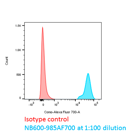 Flow Cytometry: CD68/SR-D1 Antibody (ED1) [Alexa Fluor 700] [NB600-985AF700] - Decidual Macrophages were analyzed with a BD LSRFortessa. Antibody was diluted 1:100 in staining buffer before use. Isotype control is in ...read more
