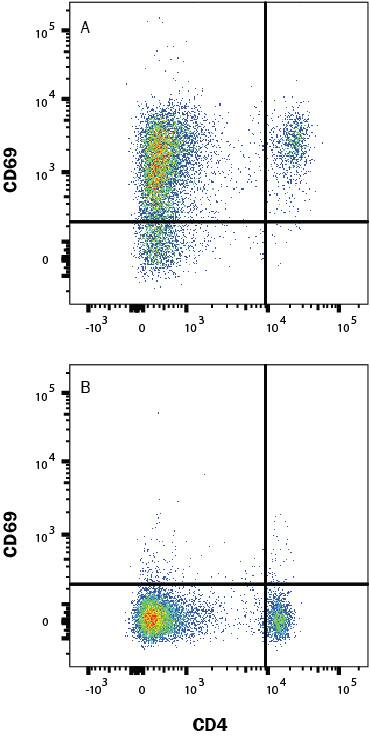 CD69, also known as Leu 23, AIM, EA-1 and MLR-3, is a type II transmembrane glycoprotein and is expressed on activated T cells, B cells, NK cells, neutrophils and eosinophils, Langerhans cells and platelets.