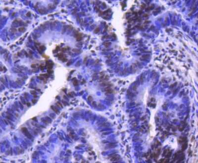 Immunohistochemistry-Paraffin: Cdk9 Antibody (SD204-07) [NBP2-67811] - Analysis of paraffin-embedded human colon cancer tissue using anti-Cdk9 antibody. Counter stained with hematoxylin.