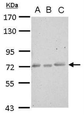 | Theoretical MW | 59 kDa. Disclaimer note: The observed molecular weight of the protein may vary from the listed predicted molecular weight due to post translational modifications, post translation cleavages, relative charges, and other experimental factors. |