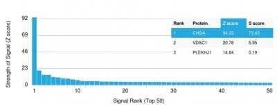 Chromogranin A (CgA) is an 86 kDa protein that is the major member of the granin family of acidic secretory glycoproteins located in neuroendocrine cells. CgA is believed to play a role in targeting peptide hormones and neurotransmitters to granules of the regulated pathways and inhibit hormone and neurotransmitter release. Also, the widespread distribution of CgA has made the measurement of circulating immunoreactive CgA a valuable tool in the diagnosis of neuroendocrine neoplasia, and CgA immunohistochemistry can help to identify the neuroendocrine nature of tumors. The N-terminal domain of CgA inhibits tumor necrosis factor a (TNFa) induced gap formation in human umbilical venous endothelial cells. CgA levels which reflect neuroendocrine differentiation of prostatic carcinoma may have a diagnostic, therapeutic and prognostic role in the management of prostate cancer patients.