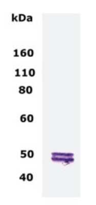 Reacts with residues 68-84 [RVIVDKYRDGTKMVSAD] of the 46-48 (doublet) kDa human. |