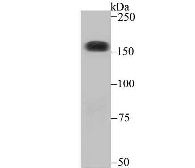 165 kDa. Disclaimer note: The observed molecular weight of the protein may vary from the listed predicted molecular weight due to post translational modifications, post translation cleavages, relative charges, and other experimental factors. |