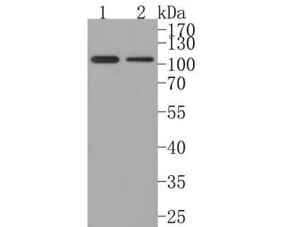 123 kDa. Disclaimer note: The observed molecular weight of the protein may vary from the listed predicted molecular weight due to post translational modifications, post translation cleavages, relative charges, and other experimental factors. |