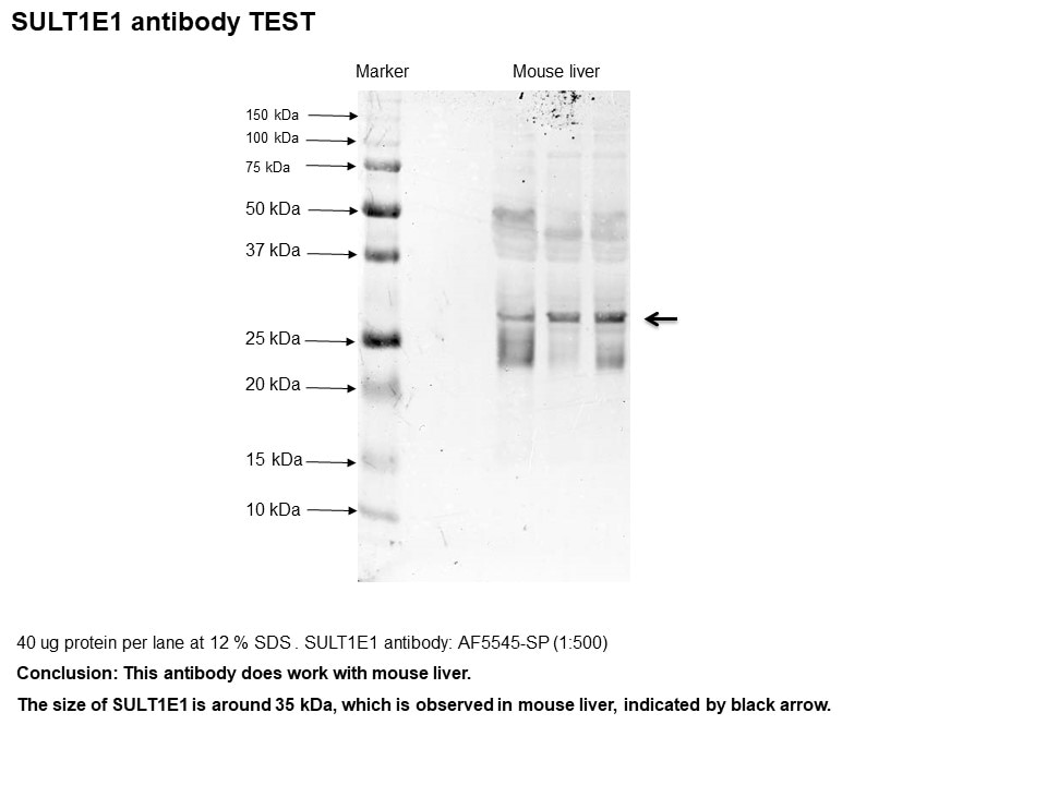 | Immunogen | E. coli-derived recombinant human Sulfotransferase 1E1/SULT1E1 Asn2-Ile294 Accession # P49888 |