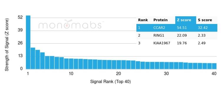 Immunohistochemistry-Paraffin: 1-2ug/ml for 30 minutes at RT. Staining of formalin-fixed tissues requires heating tissue sections in 10mM Tris with 1mM EDTA, pH 9.0, for 45 min at 95C followed by cooling at RT for 20 minutes. Optimal dilution for a specific application should be determined. |