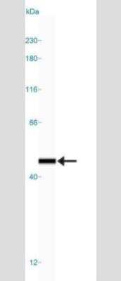 Western Blot: Endophilin B1/Bif-1 Antibody (30A882.1.1) - Azide Free [NBP2-33258] - Analysis for Bi-f-1/Endophilin-B1 using this antibody at 2 ug/ml dilution against 10 ug of Jurkat cell lysate.