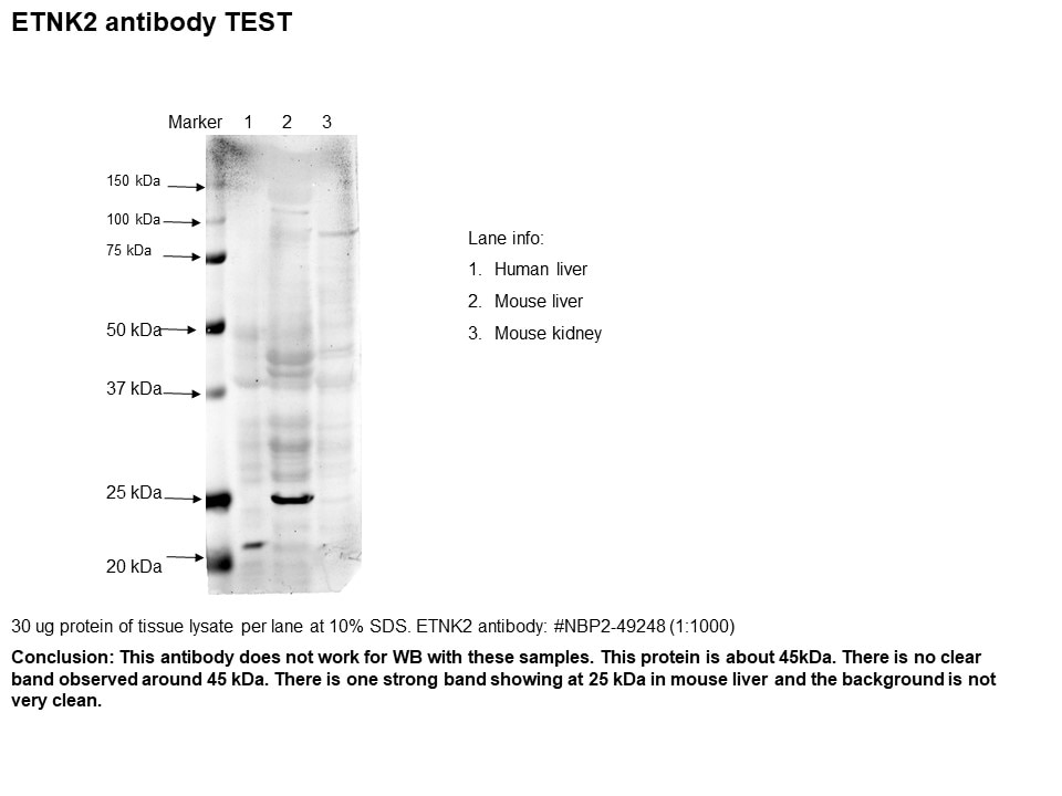 | Description | Novus Biologicals Rabbit ETNK2 Antibody - BSA Free (NBP2-49248) is a polyclonal antibody validated for use in IHC. All Novus Biologicals antibodies are covered by our 100% guarantee. |