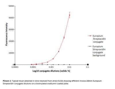 Europium Streptavidin MINI Antibody Labeling Kit [1220-0001] - Typical ELISA data with a time-resolved fluorescence (TRF) readout. Varying dilutions of Europium-Streptavidin conjugate were added to a plate coated with ...read more