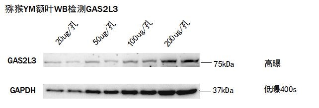 | Immunogen | GAS2L3 (AAH43366, 595 a.a. ~ 694 a.a) partial recombinant protein with GST tag. MW of the GST tag alone is 26 KDa. SAFQKTGPSSLKSPGRTPLSIVSLPQSSTKTQTAPKSAQTVAKSQHSTKGPPRSGKTPASIRKPPSSVKDADSGDKKPTAKKKEDDDHYFVMTGSKKPRK |