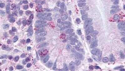 Human GLP2R. BLAST analysis of the peptide immunogen showed no homology with other human proteins. |