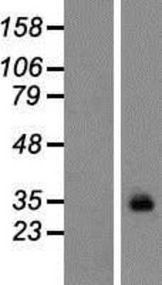 31 kDa. Disclaimer note: The observed molecular weight of the protein may vary from the listed predicted molecular weight due to post translational modifications, post translation cleavages, relative charges, and other experimental factors. |