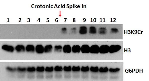 | Specificity | This Histone H3 [Crotonyl Lys9] antibody (RM339) reacts to Histone H3 crotonylated at Lysine 9, and does not cross-react with acetylated or butyrylated Lysine 9. No cross reactivity with other crotonylated Lysines in Histone H3 |