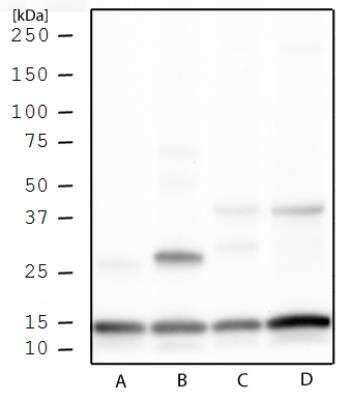 | Theoretical MW | 15 kDa. Disclaimer note: The observed molecular weight of the protein may vary from the listed predicted molecular weight due to post translational modifications, post translation cleavages, relative charges, and other experimental factors. |