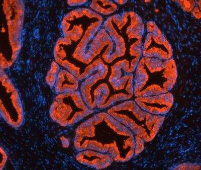 Immunofluorescence: Goat anti-Rabbit IgG Secondary Antibody [Cy3] [CY-1300-NB] - Prostate (FFPE) was antigen retrieved with antigen unmasking solution and stained with anti-PSA rabbit primary antibody and Cy3-goat ...read more