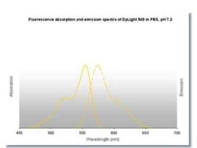 This product has been tested by western blot and is designed for immunofluorescence microscopy, fluorescence based plate assays (FLISA) and fluorescent western blotting. This product is also suitable for multiplex analysis, including multicolor imaging, utilizing various commercial platforms. The emission spectra for this DyLight(TM) conjugate match the principle output wavelengths of most common fluorescence instrumentation. |