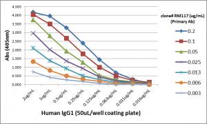 | Specificity | This antibody reacts to the heavy chain of human IgG1. It does not cross react to any other IgG subclasses (IgG2, IgG3, or IgG4), and shows no cross reactivity to IgM, IgA, IgD, IgE. This antibody does not react to monkey (Cyno or Rhesus) IgG, mouse IgG, rat IgG, or goat IgG. |