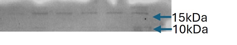 Western Blot: IL-17E/IL-25 Antibody (68C1039.2) [NB100-56541] - Analysis of IL-17E using IL-17E monoclonal antibody. Mouse testis lysate probed with IL-17E antibody at 2 ug/mL.
