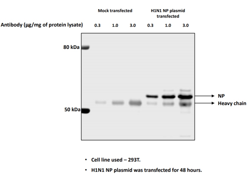 | Immunogen | Recombinant protein of Influenza A H1N1 Nucleoprotein (A/WSN/1933(H1N1). The exact sequence is proprietary. |