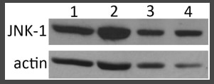 | Specificity | Detects human, mouse, and rat JNK1, expressed predominantly as p46 JNK (isoforms 2 and/or 3, both 384 aa), with lesser amounts of p54 JNK (isoforms 1 and/or 4, both 427 aa), in Western blots. Does not detect recombinant JNK2 or JNK3. |