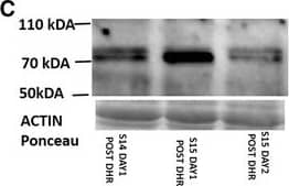 | Durcan , Peter, Conradie , Johannes, Van deVyver , Mari, Myburgh , Kathryn Identification of novel Kirrel3 gene splice variants in adult human skeletal muscle. BMC Physiol, 2014-12-09;14(1):11. 2014-12-09 [PMID: 25488023] (Western Blot, Human) | Western Blot | Human |