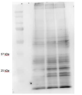 The observed molecular weight of the protein may vary from the listed predicted molecular weight due to post translational modifications, post translation cleavages, relative charges, and other experimental factors.