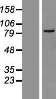 | Application Notes | This product is intended for use as a positive control in Western Blot. Overexpression of the target protein was confirmed using an antibody to DDK (FLAG) epitope tag (NBP1-71705) present on the protein construct. Each vial of cell lysate contains 100ug of total protein which should be sufficient for 20-50 reactions. Depending on over-expression level, antibody affinity and detection system, some lysates can go as low as 0.1 ug per load. We recommend starting with 5ug of cell lysate. Add an equal amount of cell lysate and 2X SDS Sample buffer and boil the SDS samples for 10 minutes before loading. |