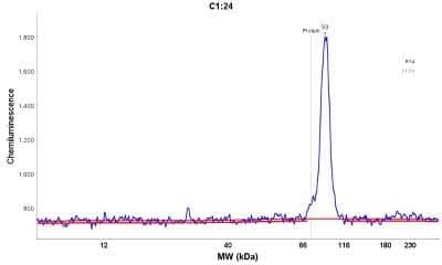 | Application Notes | For IHC-Paraffin, HIER pH 6 retrieval is recommended. In Simple Western only 10 - 15 uL of the recommended dilution is used per data point. See Simple Western Antibody Database for Simple Western validation: Tested in RT-4, separated by Size, antibody dilution of 1:20, apparent MW was 93 kDa. Separated by Size-Wes, Sally Sue/Peggy Sue. |