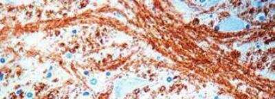 This reacts with human myelin basic protein and oligodendrocytes of white matter in brain and spinal cord. Grey matter stains weakly. This also stains peripheral nerves. |