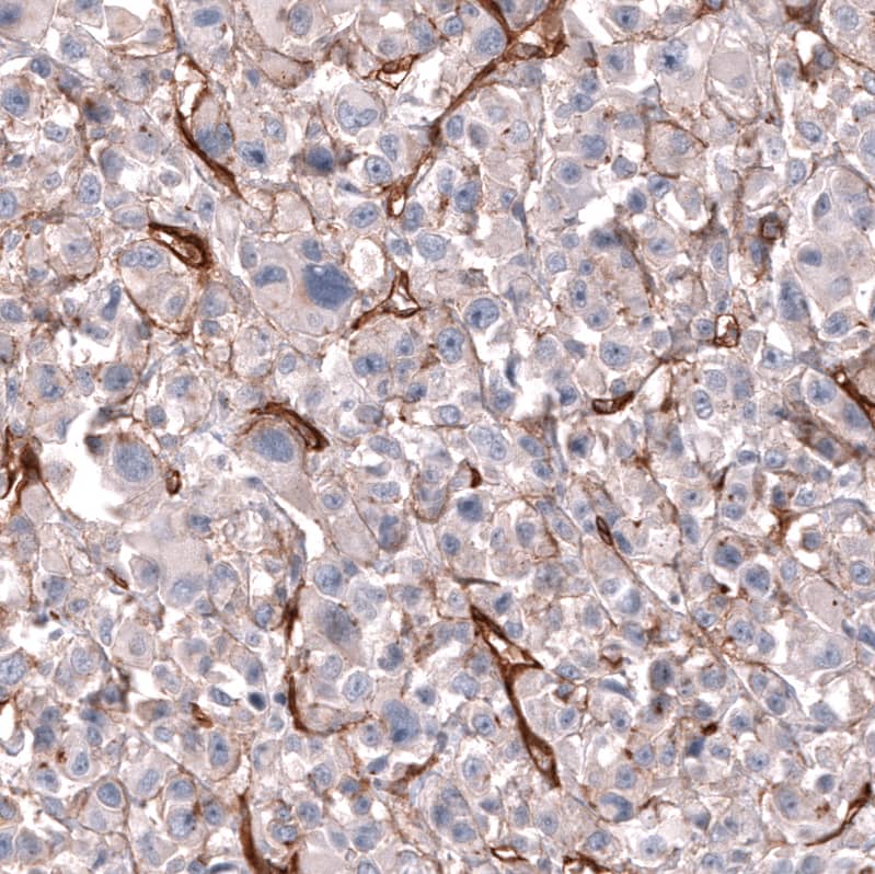 CD146 belongs to the immunoglobulin supergene family with five immunoglobulin like domains (V-V-C2-C2-C2), a transmembrane region and a 63 residue cytoplasmic tail. The protein is a membrane glycoprotein that functions as a Ca2+ independent cell adhesion molecule involved in heterophilic cell to cell interactions. CD146 has a molecular size of 130 kDa in its reduced form (118 kDa unreduced), and N linked glycosylation accounts for fifty percent of the apparent molecular weight. In some cells the molecule carries a sulfate 3 glucuronyl moiety. Expression of the molecule was shown in a relatively limited spectrum of normal human tissues (endothelium, smooth muscle, and subpopulations of activated T cells) and malignant neoplasm (melanoma and breast carcinoma). The lineage specific expression pattern of CD146 can be useful in the differential diagnosis of certain lesions including melanomas and various types of gestational trophoblastic lesions. CD146 expression can promote tumor progression in human melanoma, through enhanced interaction between melanoma cells and endothelial cells. However, in breast carcinoma, CD146 may act as a tumor suppressor. Over expression of CD146 in breast carcinoma cells results in a more cohesive cell growth and in the formation of smaller tumors in nude mice. During implantation and placentation, CD146 is expressed by the intermediate trophoblast in the placental site and binds to its putative receptor in uterine smooth muscle cells thus limiting trophoblastic invasion in the myometrium. Monoclonal antibody specific for CD146 is an important tool for the identification and isolation of cells expressing CD146.