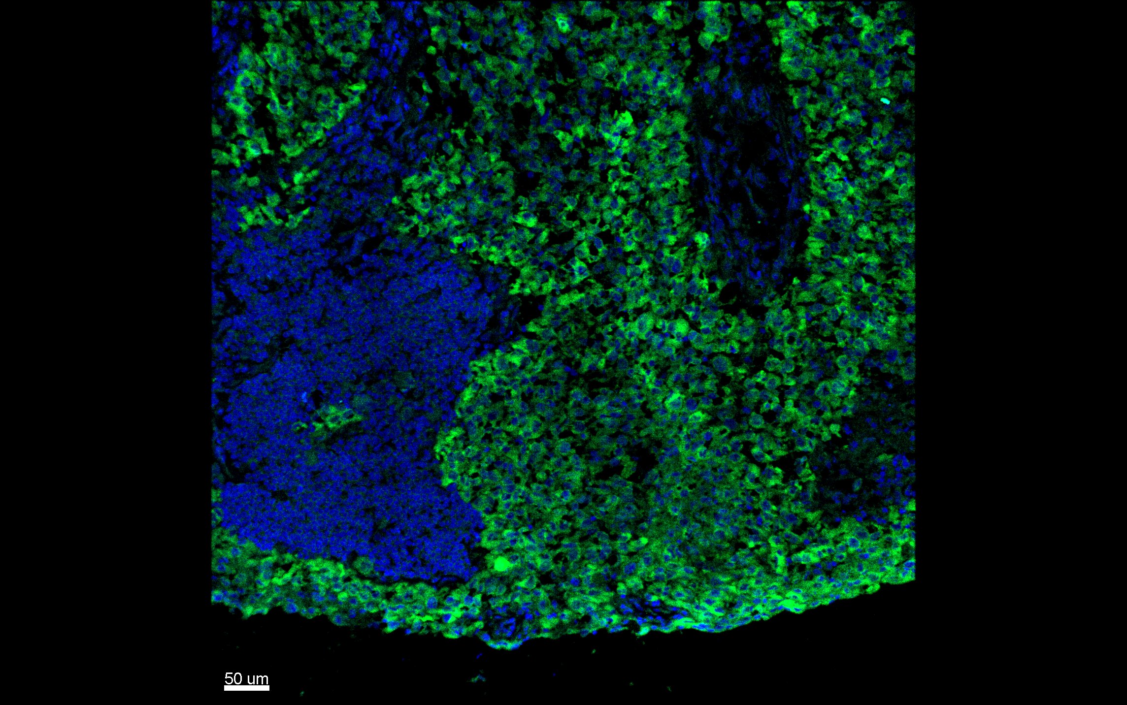 This antibody recognizes a protein doublet of 20-22kDa, identified as MART-1 (Melanoma Antigen Recognized by T cells 1) or Melan-A. MART-1 is a newly identified melanocyte differentiation antigen recognized by autologous cytotoxic T lymphocytes. Seven other melanoma associated antigens recognized by autologous cytotoxic T cells include MAGE-1, MAGE-3, tyrosinase, gp100, gp75, BAGE-1, and GAGE-1. Subcellular fractionation shows that MART-1 is present in melanosomes and endoplasmic reticulum. This monoclonal antibody labels melanomas and other tumors showing melanocytic differentiation. It is also a useful positive-marker for angiomyolipomas. It does not stain tumor cells of epithelial, lymphoid, glial, or mesenchymal origin.