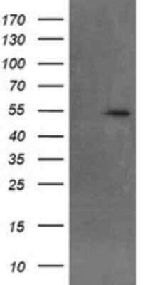53.2 kDa. Disclaimer note: The observed molecular weight of the protein may vary from the listed predicted molecular weight due to post translational modifications, post translation cleavages, relative charges, and other experimental factors. |