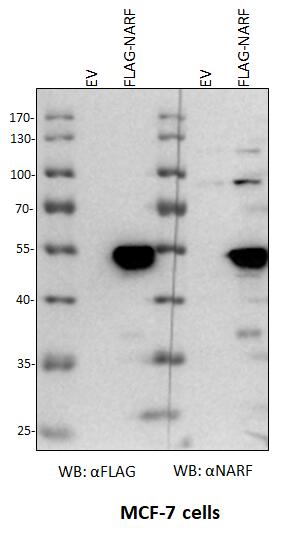 Recombinant protein encompassing a sequence within the center region of human NARF. The exact sequence is proprietary.